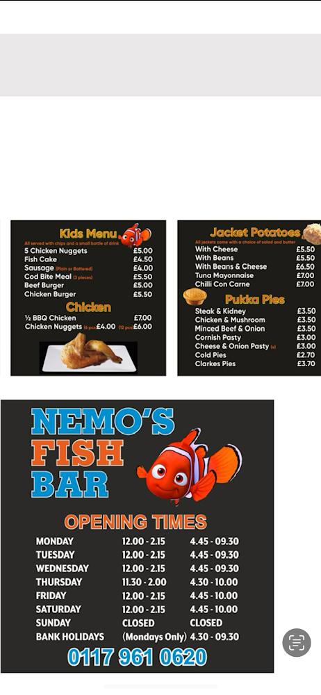 Located in Bristol, Nemo's Fish Bar stands out as a beloved eatery for locals craving authentic fish and chips. The address at Westons Way, BS15 9RR, is easily accessible, complete with a wheelchair-accessible car park and entrance. If you're in the area, you might notice the welcoming environment that resonates with customers. The casual vibe makes it perfect for a family outing, lunch break, or late-night snack. Open seven days a week, Nemo's provides consistent quality and service, ensuring you can satisfy your cravings whenever they strike. Notably, the restaurant also offers delivery and takeaway options for those on the go. With a dedicated kids’ menu and various vegetarian choices, everyone finds something they'll love here.